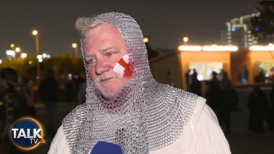 La imagen de este seguidor de la selección inglesa vestido de caballero medieval se hizo viral en las redes sociales y el protagonista de la misma, que ya es conocido como el Cruzado de Inglaterra, acaparó multitud de mensajes de apoyo y es que hay que ser valiente para presentarse en un país como Qatar con un atuendo que remite a los tiempos en que los cristianos iban a Tierra Santa a combatir frente a los musulmanes.